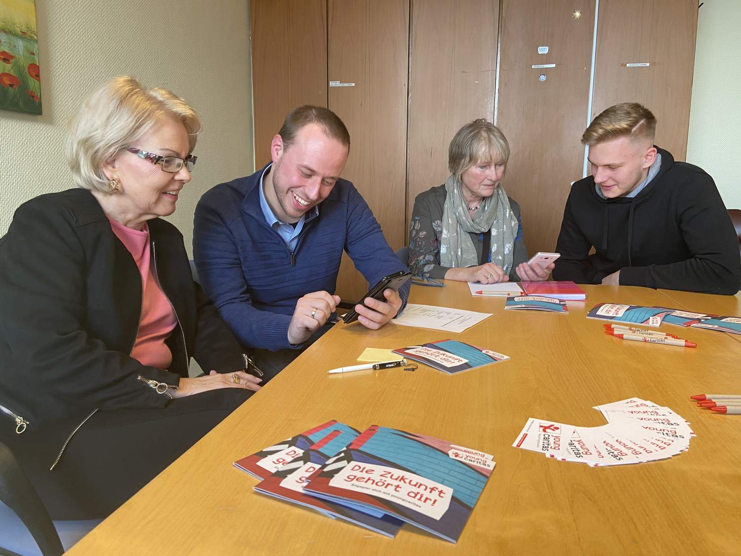 Drei Handynutzerinnen fanden den Weg zum Startschuss des neuen Angebots der „jungen Caritas“. „Man weiß nie, wie viele kommen, aber grundsätzlich muss es sich erst rumsprechen“, ist Christian Löwentat, Koordinator bei „youngcaritas“, zuversichtlich.