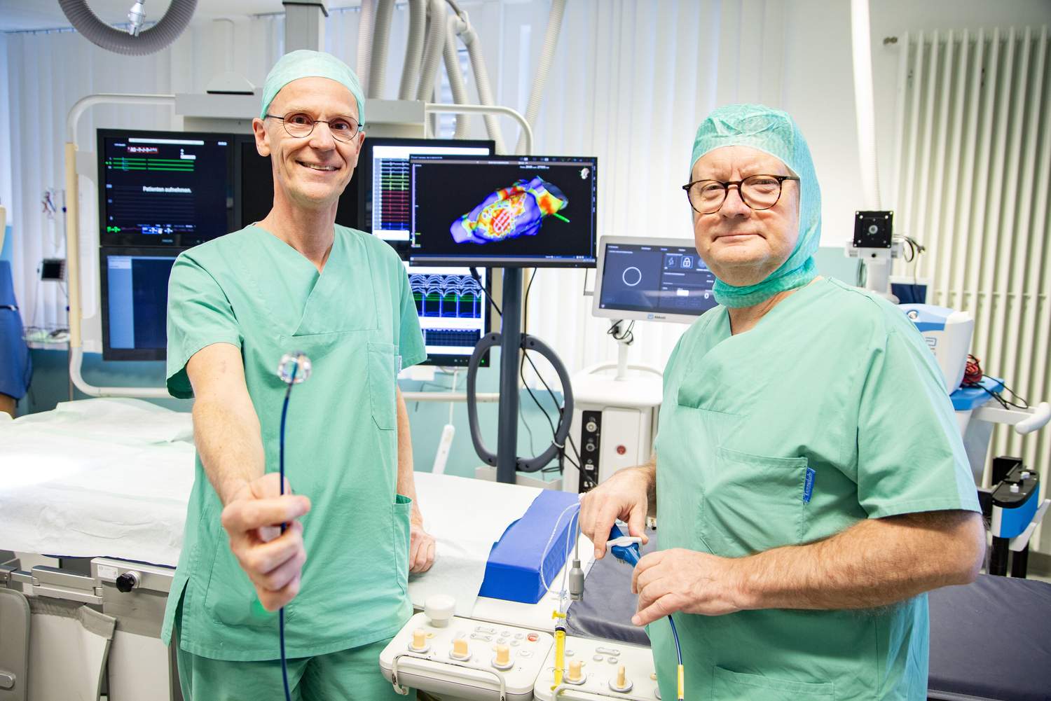 Die Pulsed Field Ablation erfolgt über einen Katheter, der über ein Blutgefäß bis ins Herz vorgeschoben wird. Bisher wurden die störenden Bereiche meist mit Hitze (Radiofrequenz) oder Kälte (Kryotherapie) verödet. Dabei entsteht gezielt Narbengewebe, das wie eine Barriere wirkt und die Weiterleitung der Störimpulse blockiert. Allerdings können Hitze oder Kälte in seltenen Fällen auch umliegende Strukturen wie die Speiseröhre, Blutgefäße oder Nerven beeinträchtigen.