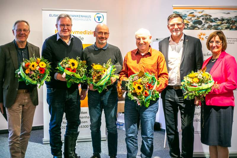 Neben Dr. Dederichs selbst machten vier weitere renommierte Referenten die Fortbildungsveranstaltung möglich: Klaus Reckinger, eh. Leitender Arzt der Palliativstation am Elisabeth Krankenhaus Recklinghausen, Dr. med. Norbert Reike, niedergelassener Hausarzt und Vorstand des Palliativnetzes „PAMIR“, Dr. med. Thomas Günnewig, Chefarzt der Geriatrie/Neurologie am Elisabeth Krankenhaus Recklinghausen, und Dr. med. Boris Hait, leitender Oberarzt der Palliativmedizin am Christlichen Klinikum Unna. Herzlichen Dank.